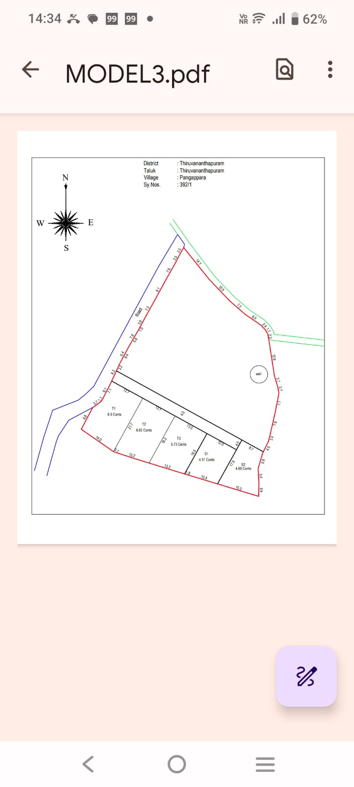 33.5 cents land for sale in Gandhipuram Chilambil Lane, near Sreekariyam. which shall be sold as single or as plots. Plots area shall vary from 4.5 to 7 cents with 4-meter-wide internal road facility. For small plots the price shall range from 8.5 to 10.5 depending on the plot. The prices are negotiable.