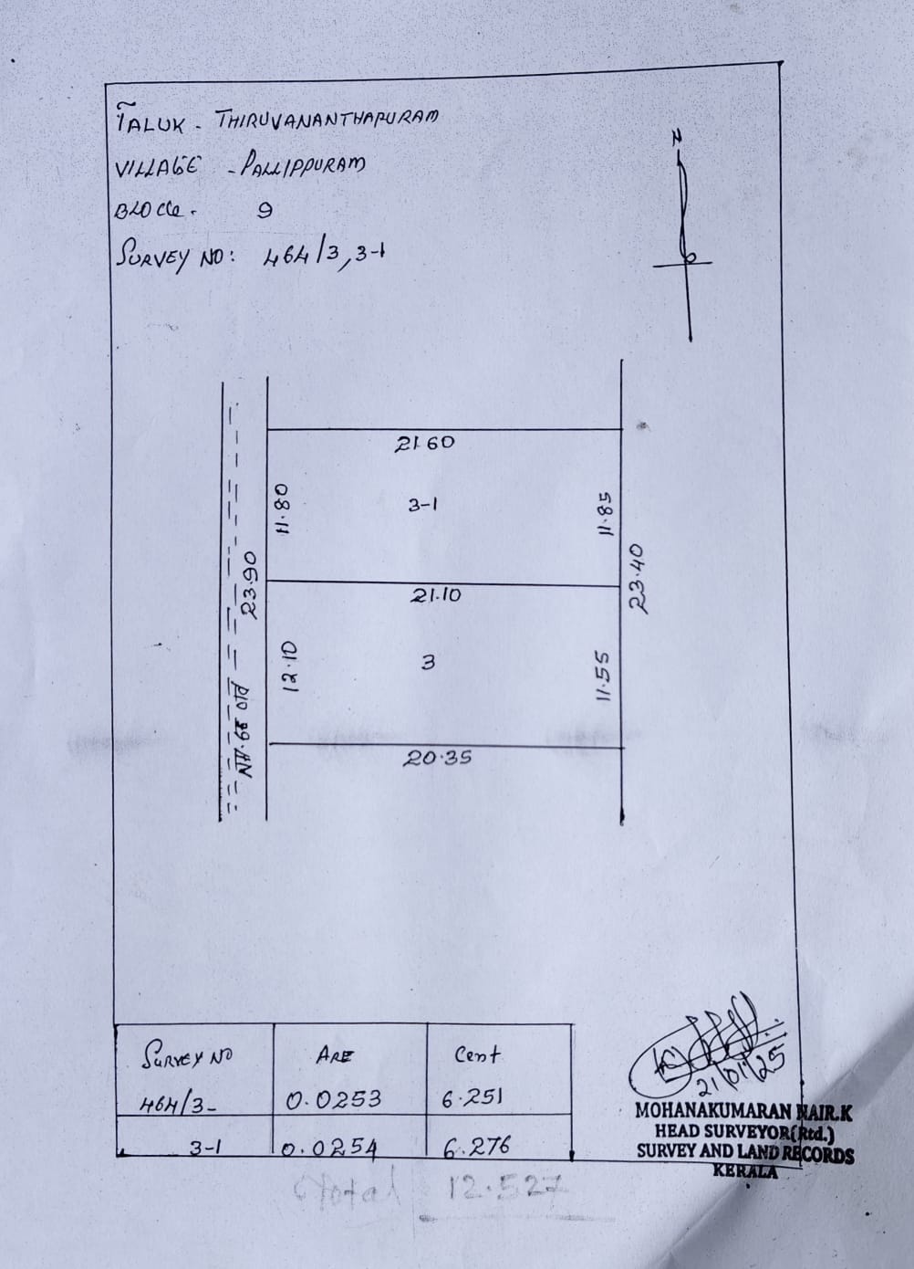 12 സെൻറ് സ്ക്വയർ പ്ലോട്ട് ഫോർ സെയിൽ പല്ലിപുരം, തിരുവനന്തപുരം.