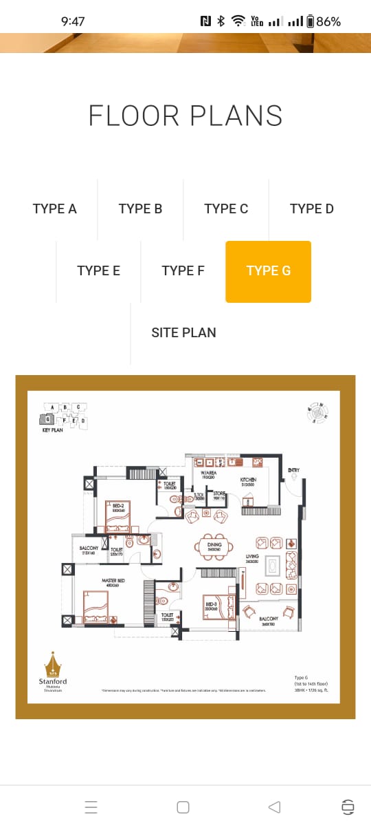 1750 sqft 3 bedroom flat for sale in Mukkola Thiruvananthapuram. Near St. Thomas School Thiruvananthapuram. SFS Builders building first floor east facing.