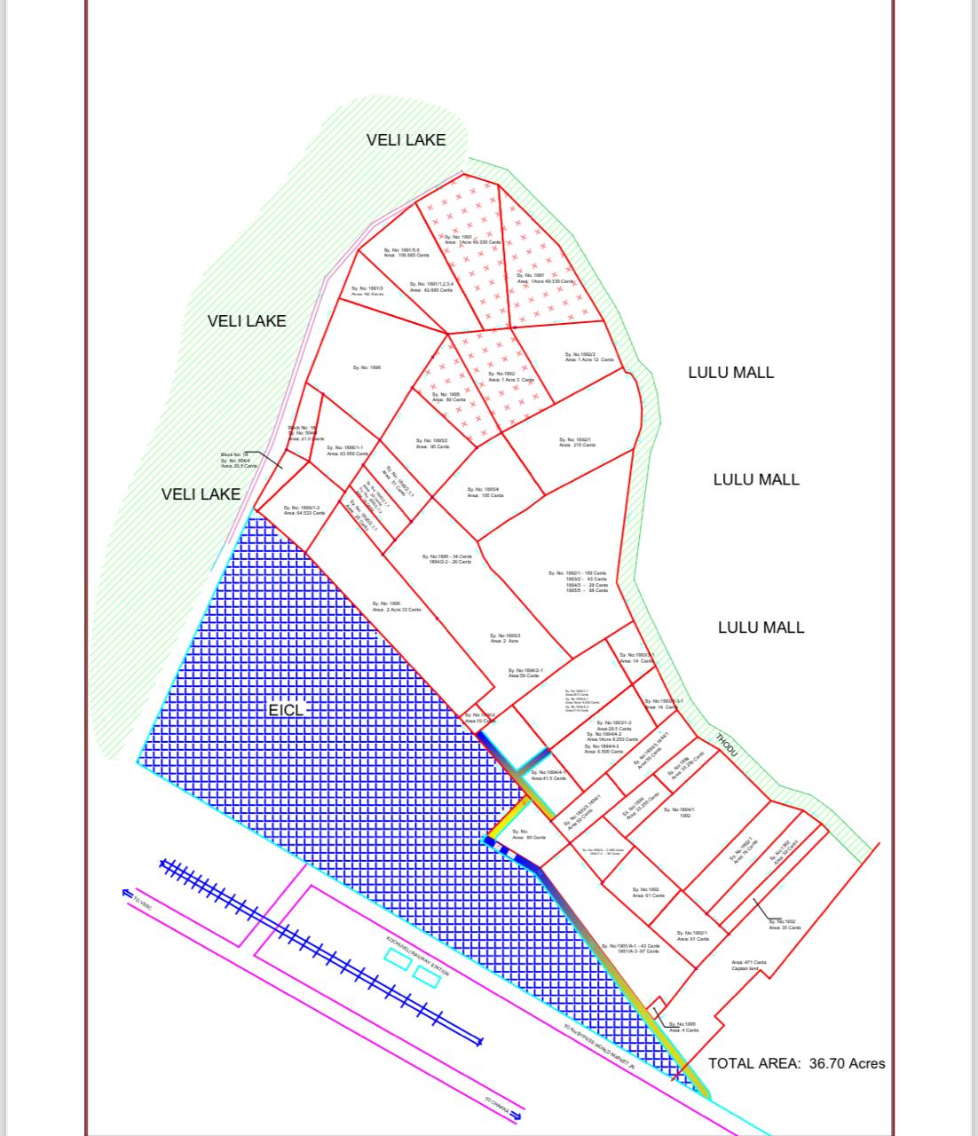 40-acre scenic property, which is located directly behind Lulu Mall, the largest shopping mall in South India, bordered by Akkulam Lake and Parvathi Puthanar canal, and just steps away from Kochuveli Central Railway Station.